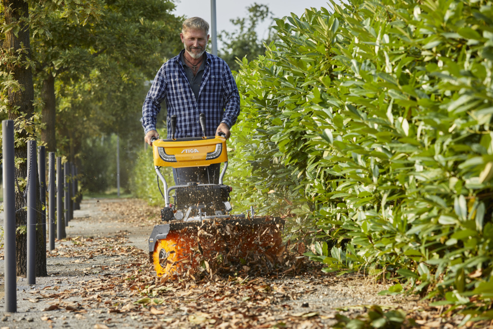 Mootoriga tänavapuhastushari sobib suurte alade puhastamiseks, sest tööala laius on 80cm.